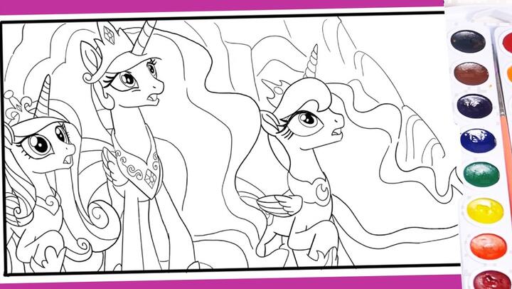 My Little Pony Coloring pages. 100 Free Coloring pages. Lovely horses are also called My Little Pony and they are the heroes of the cartoon Friendship is Magic The main characters: Rarity, Applejack, Pinkie Pie, Sparkle, Rainbow Dash, Spike – it is with them and their friends that you will meet on the coloring pages. Princess Celestia at heart.